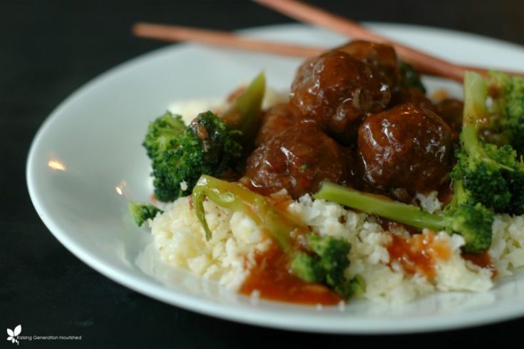 - Serve the sweet and sour meatballs over the cauli-rice and add your steamed veggies to the top. There should be plenty of sweet and sour sauce in the pan to pour some over your veggies too!